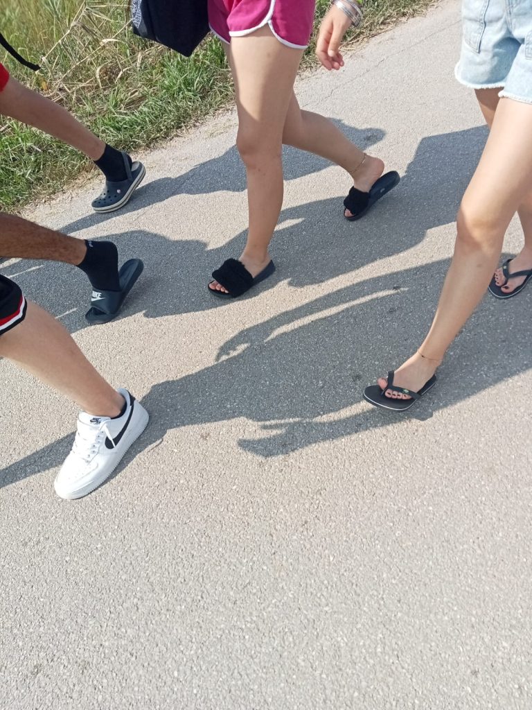 Vi è mai capitato di camminare velocemente? Lo si fa quasi sempre se sei impegnato nello svolgimento di un’attività sportiva oppure, nel tentativo di recuperare del tempo, quando sai di essere in ritardo. Nel caso nostro no. La foto ci mostra dei piedi che, in un momento di goliardia, tentano di arrivare gli uni prima degli altri. REGOLA: “Non è una corsa. È vietato correre”. Ed ecco che l’incedere dei passi spediti è solo il gioco, attraverso cui si tenta di arrivare per primi. C’è un premio da riscuotere. In attesa di farvi conoscere chi ha vinto, vi invitiamo ad immaginare quante risate questo andamento spedito ha prodotto. Ridere fa sempre bene al cuore.